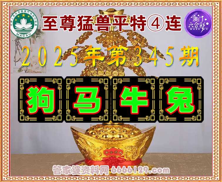 345期:『至尊猛兽』 🏄♀️平特④连🏄♀️【狗马牛兔】开:狗32,马24,牛41,兔03准