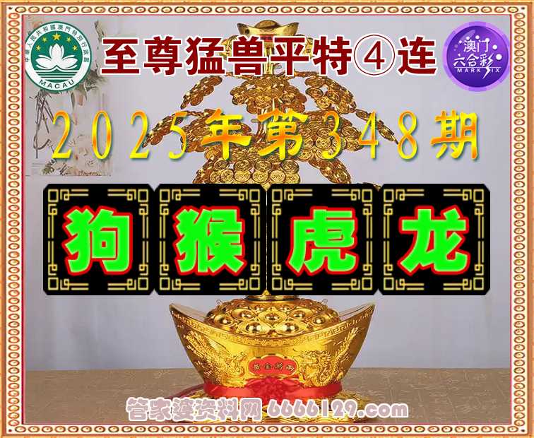 348期:『至尊猛兽』 🏄♀️平特④连🏄♀️【狗猴虎龙】开:狗44,猴22,虎16,龙26准
