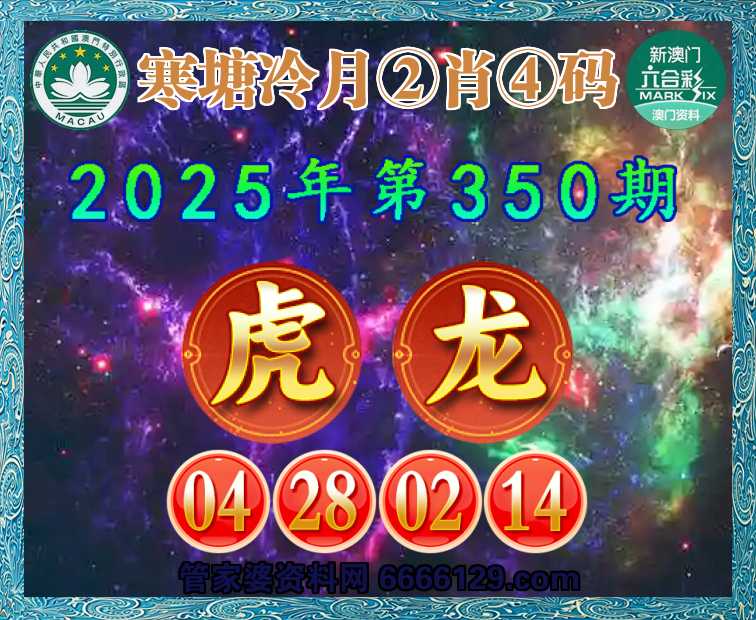 350期:【寒塘冷月】 🧤②肖④码🧤【虎龙】【04.28.02.14】开:00准