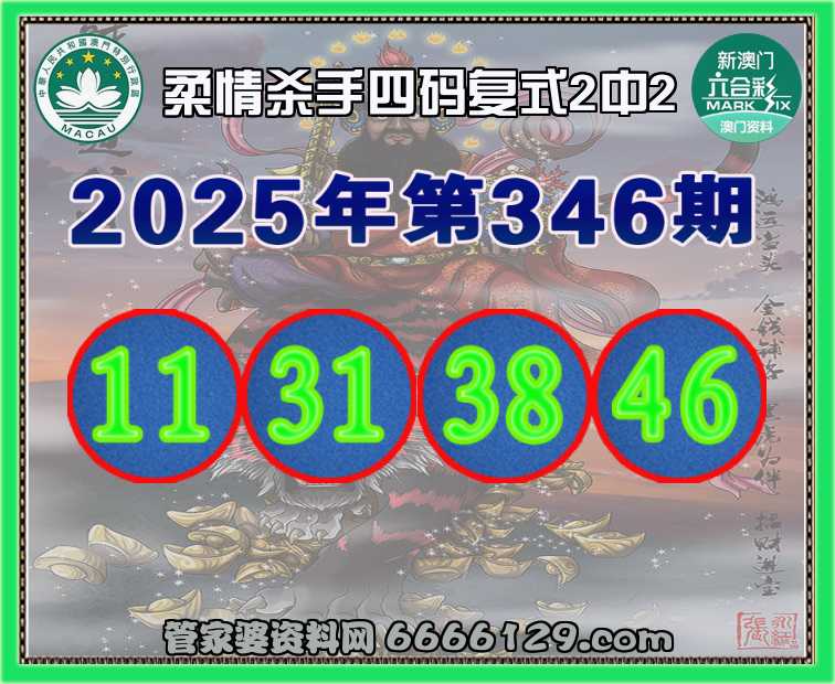 346期: 柔情杀手 🍟四码复式2中2🍟