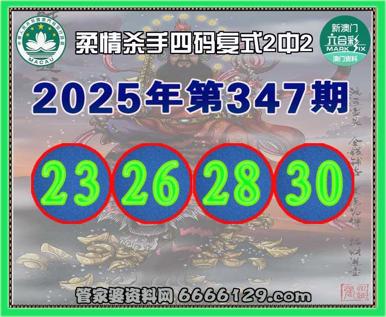 347期: 柔情杀手 🍟四码复式2中2🍟