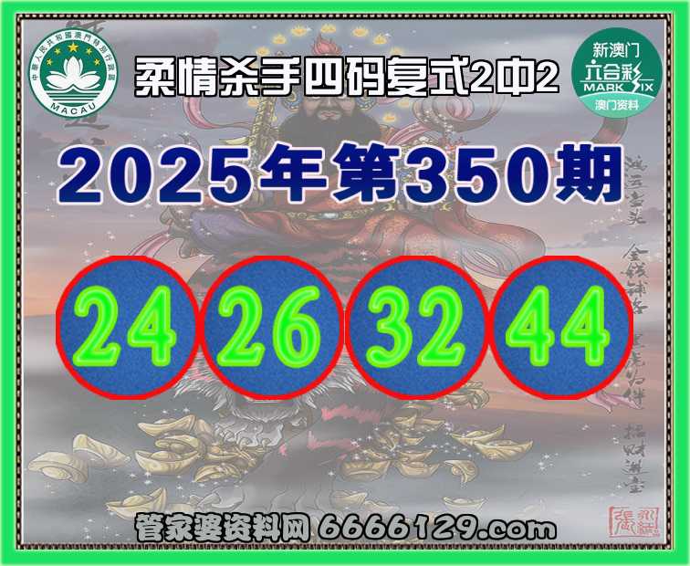 350期: 柔情杀手 🍟四码复式2中2🍟