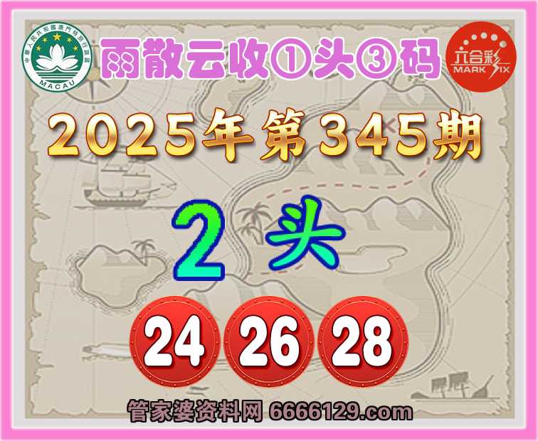 345期:【雨散云收】 😍①头③码😍【2头主:24.26.28】开:马24准